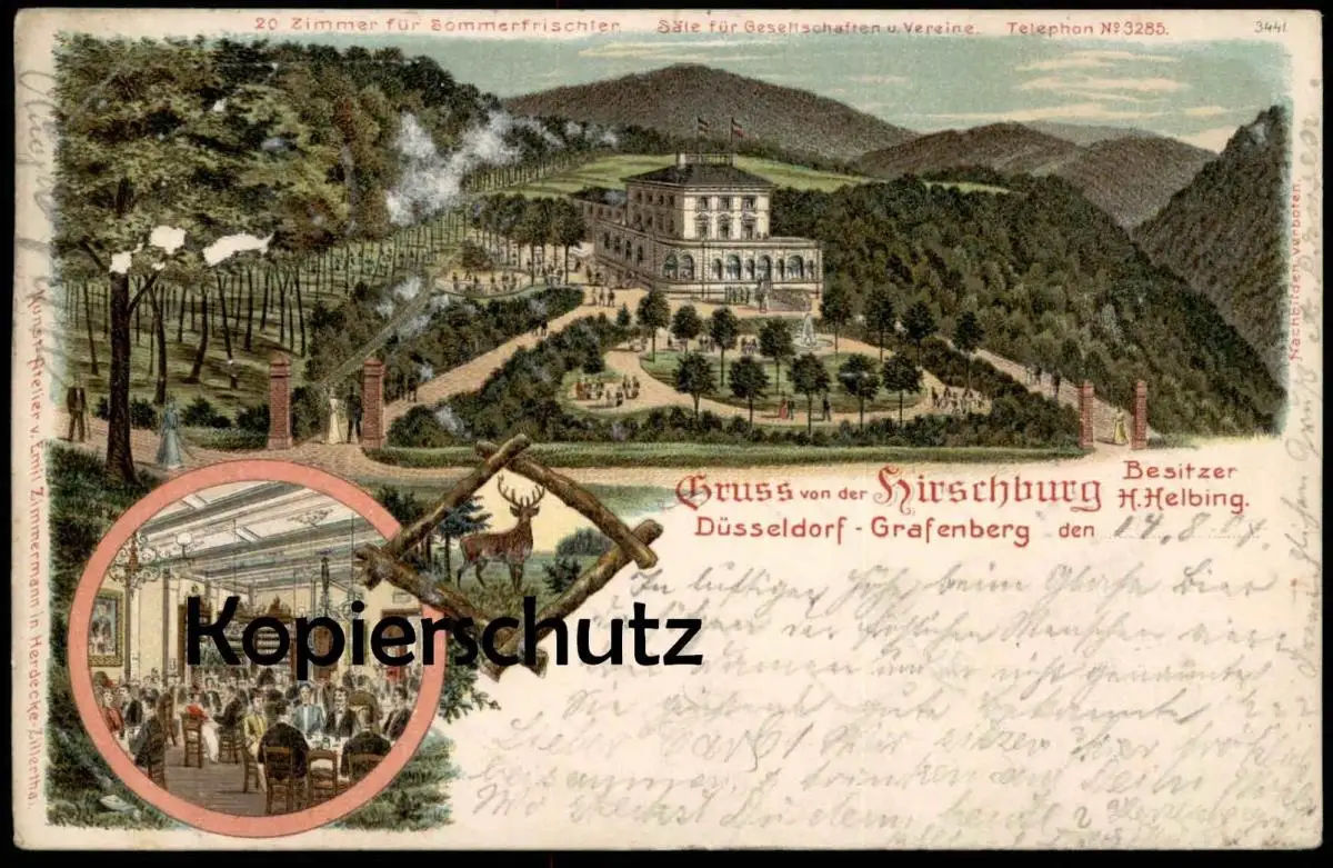 ALTE LITHO POSTKARTE DÜSSELDORF GRAFENBERG GRUSS VON DER HIRSCHBURG BES. H. HELBING cpa postcard AK Ansichtskarte