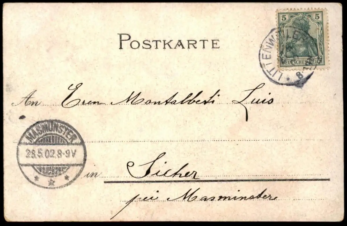 Gelaufen: 27.05.1902 mit Stempel Littenweiler nach MasmünsterErhaltung (s. Scan): gut, links oben minimaler Abrieb / 915234