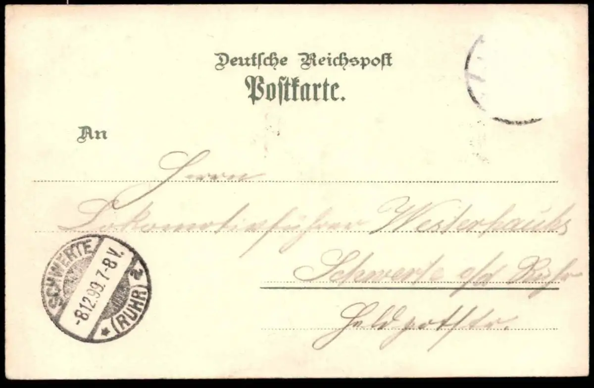 Gelaufen: 08.12.1899 nach Schwerte, Briefmarke mit etwas Spuren (nur rückseitig) entferntErhaltung (s. Scan): gut / 915238