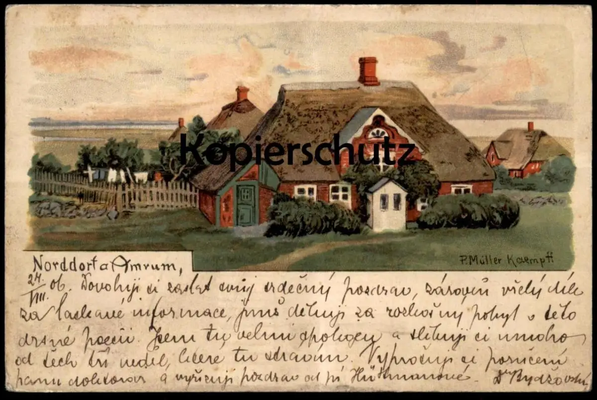 ALTE LITHO POSTKARTE INSEL AMRUM NORDDORF BAUERNHAUS PAUL MUELLER-KAEMPFF Haus Kate Ansichtskarte AK cpa postcard