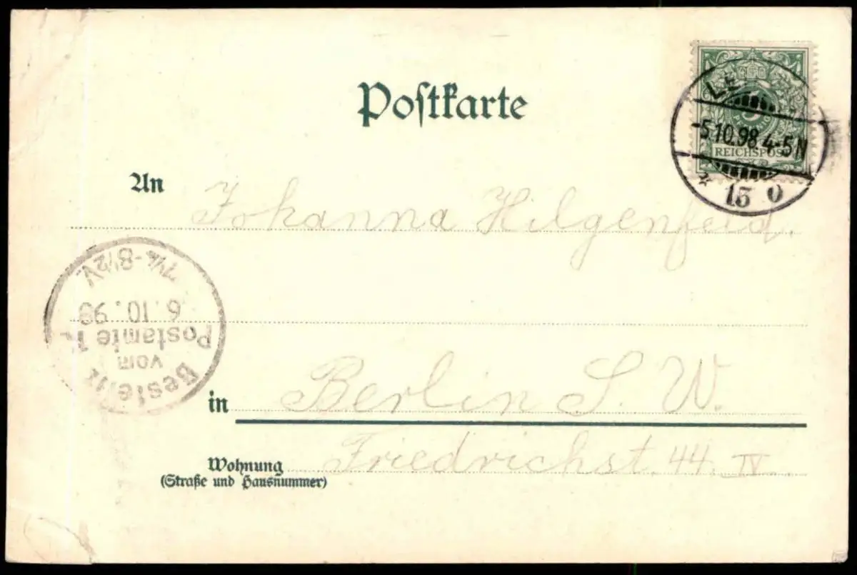 Gelaufen: 05.10.1898 mit Stempel Leipzig nach BerlinErhaltung (s. Scan): gut - mittel, Ecke rechts oben etwas bestoßen / 918315