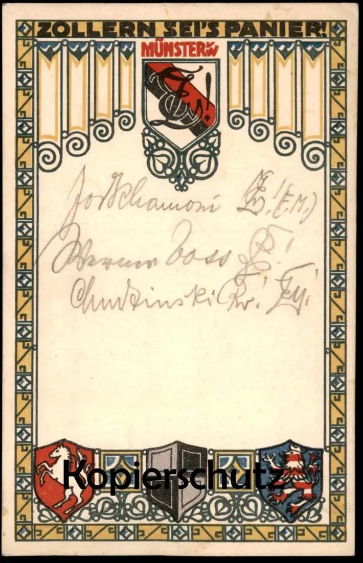 ALTE LITHO POSTKARTE ZOLLERN SEI'S PANIER MÜNSTER COULEURKARTE BURSCHENSCHAFT Studentica Studentika Ansichtskarte AK cpa