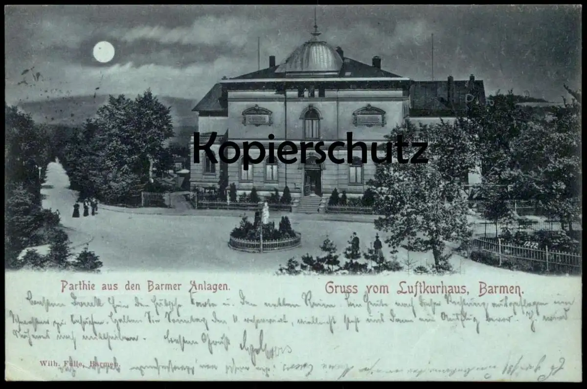 ALTE MONDSCHEIN POSTKARTE GRUSS VOM LUFTKURHAUS BARMEN PARTHIE BARMER ANLAGEN PARTIE WUPPERTAL Ansichtskarte AK postcard