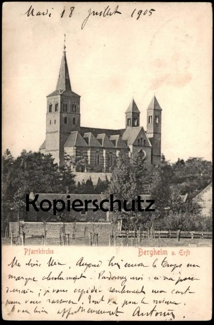 ALTE POSTKARTE BERGHEIM AN DER ERFT PFARRKIRCHE Bahnpost 1905 Kirche église church cpa postcard Ansichtskarte AK
