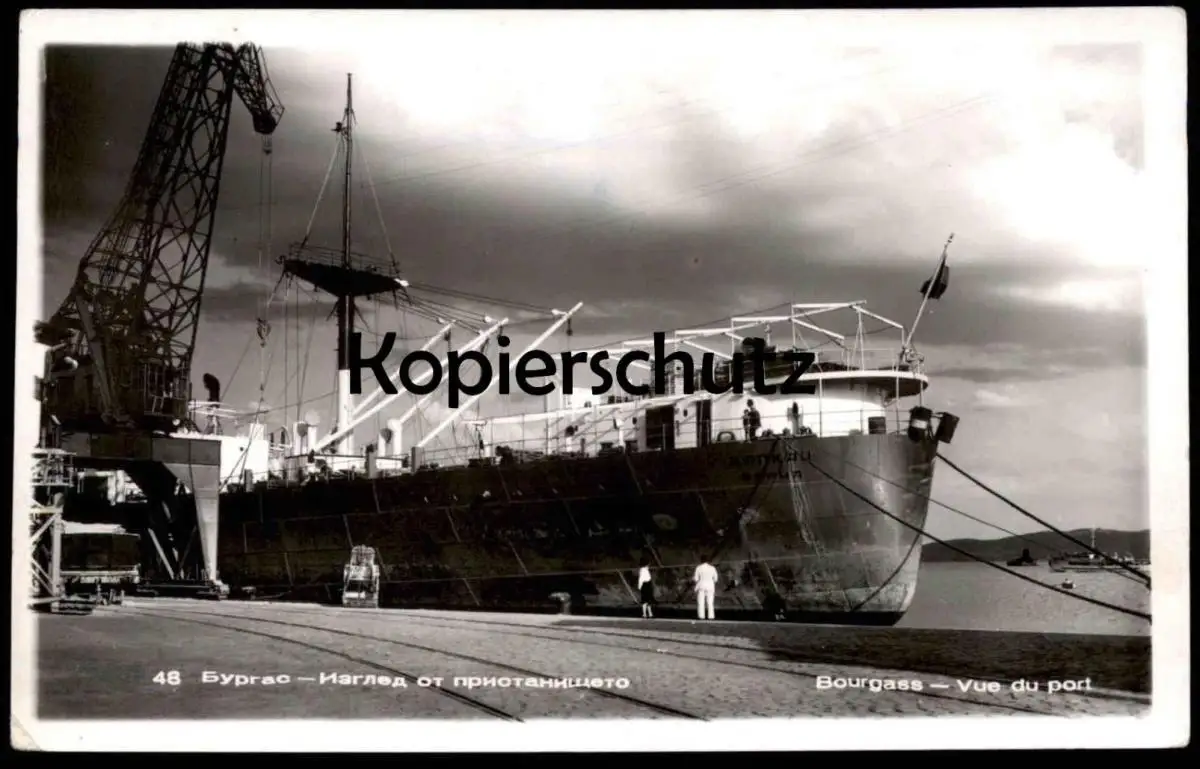 ALTE POSTKARTE BOURGASS FRACHTSCHIFF BALKAN IM HAFEN Schiff Burgas Bourgas cargo freight ship vrachtschip postcard cpa