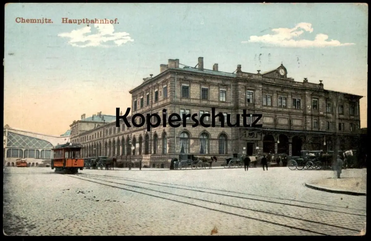 ALTE POSTKARTE CHEMNITZ HAUPTBAHNHOF STRASSENBAHN 1912 tram tramway Bahnhof gare station Ansichtskarte cpa postcard AK