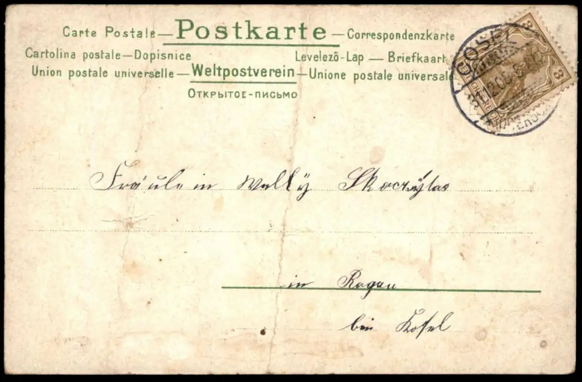 Gelaufen: 31.12.1905 mit Stempel Cosel Oberschlesien Kozle nach Rogau bei Cosel