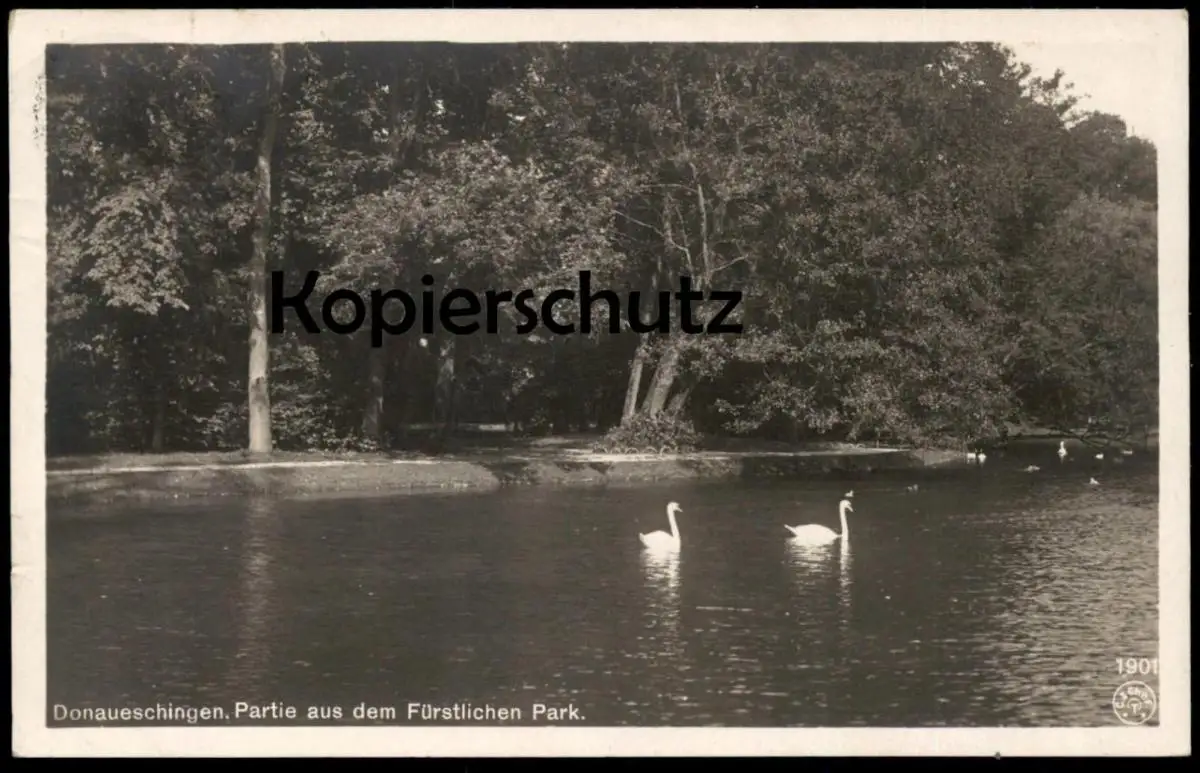 ALTE POSTKARTE DONAUESCHINGEN PARTIE AUS DEM FÜRSTLICHEN PARK 1924 Schwäne cygne swan parc Ansichtskarte AK cpa postcard