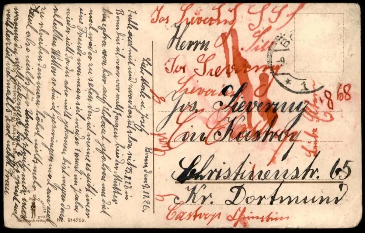 Verlag: Kunstverlag Bernhard Wandt, Oberhausen; Marke E. GoldhagenGelaufen: 09.11.1926 nach Kastrop (Castrop), Briefmarke (sauber) entferntErhaltung (s. Scan): mittel, Ecken etwas bestoßen / 915164