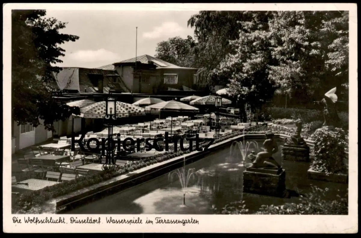 ALTE POSTKARTE DÜSSELDORF DIE WOLFSSCHLUCHT RESTAURANT WASSERSPIELE IM TERRASSENGARTEN GRAFENBERGER WALD AK cpa postcard