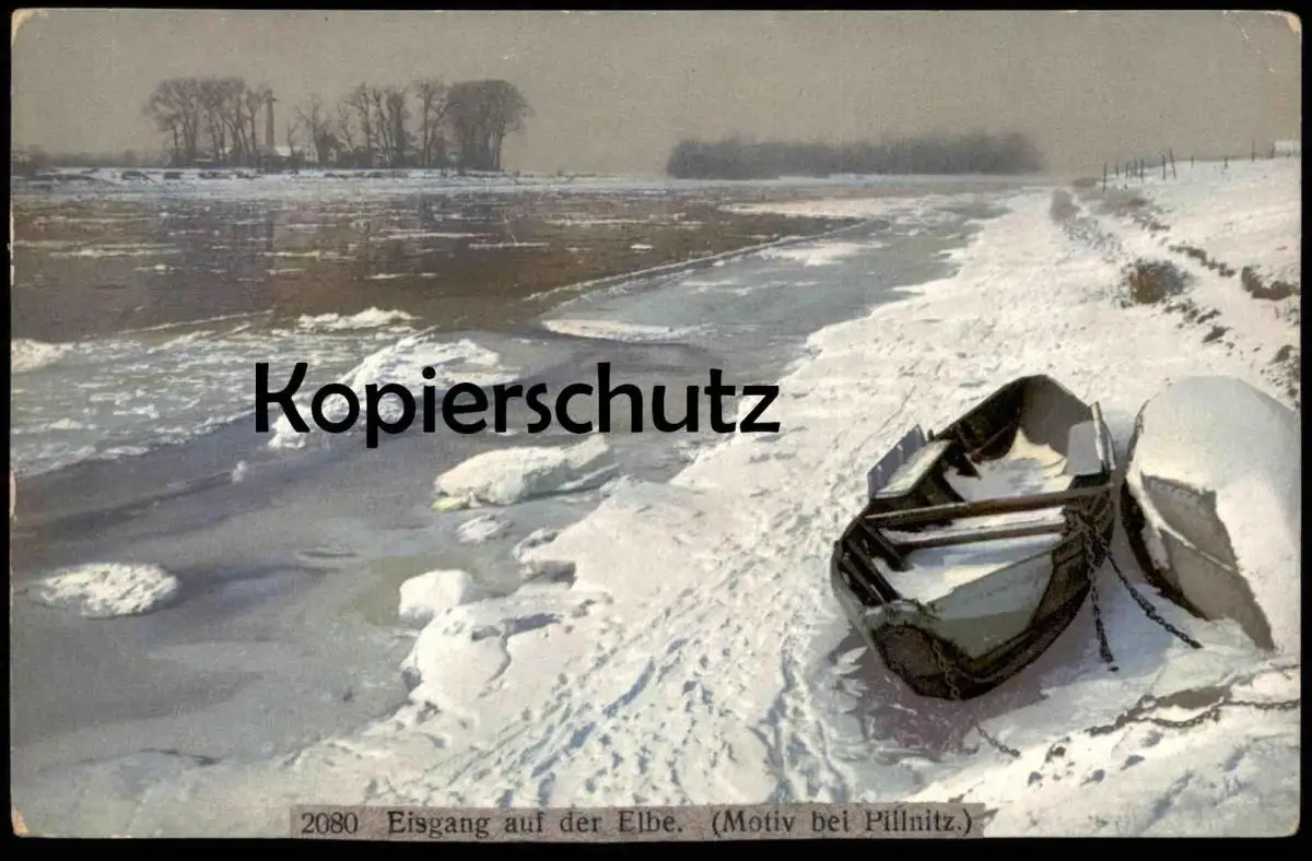 ALTE POSTKARTE EISGANG AUF DER ELBE MOTIV BEI PILLNITZ DRESDEN NENKE & OSTERMAIER PHOTOCHROMIE Ansichtskarte postcard AK