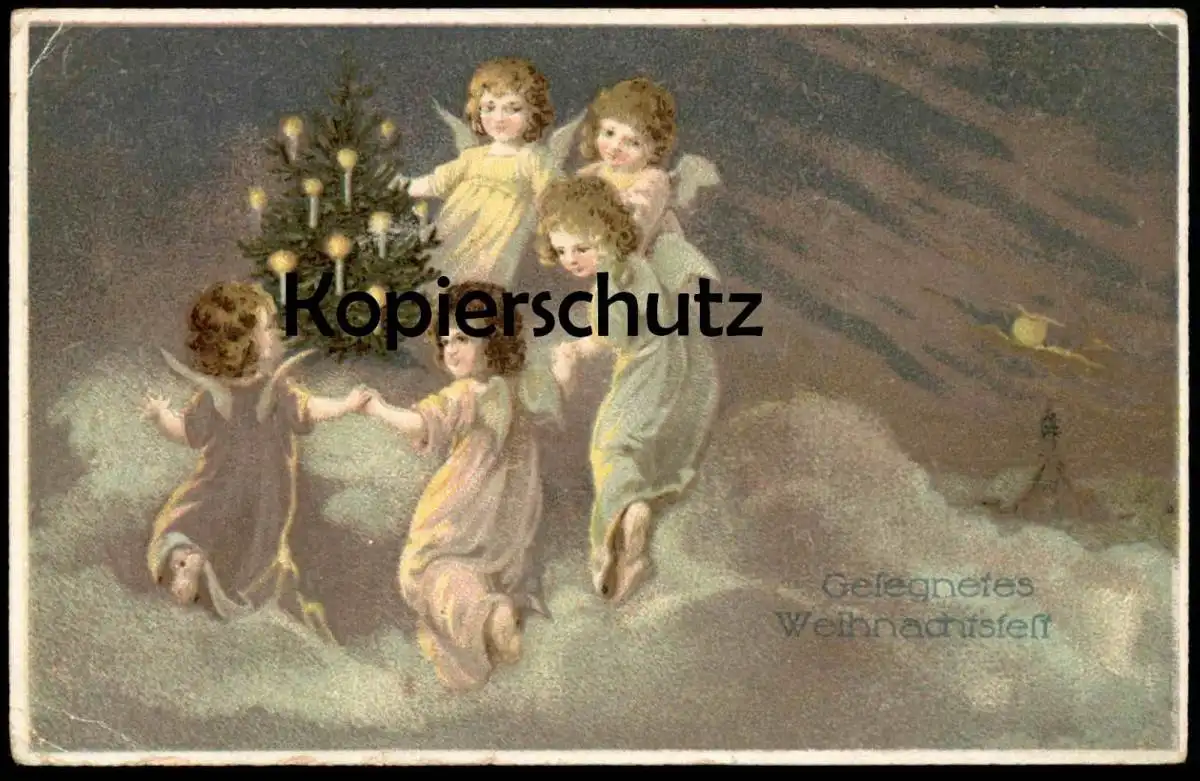 ALTE POSTKARTE ENGEL UM WEIHNACHTSBAUM GESEGNETES WEIHNACHTSFEST WEIHNACHTEN SCHUTZENGEL angel ange chistmas postcard AK