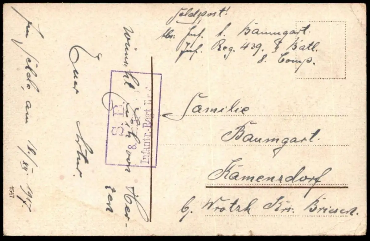 Gelaufen: 18.12.1917 im Felde mit Stempel Inf. Regiment 8. Compagnie
