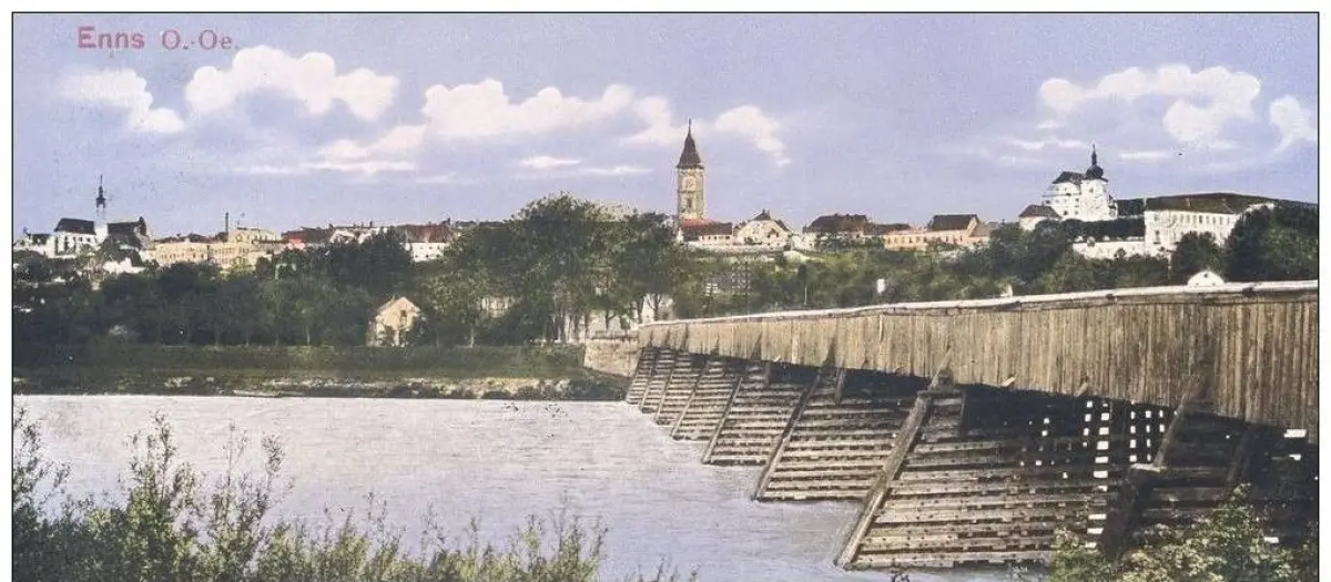 ALTE POSTKARTE ENNS HOLZBRÜCKE UND KINDER