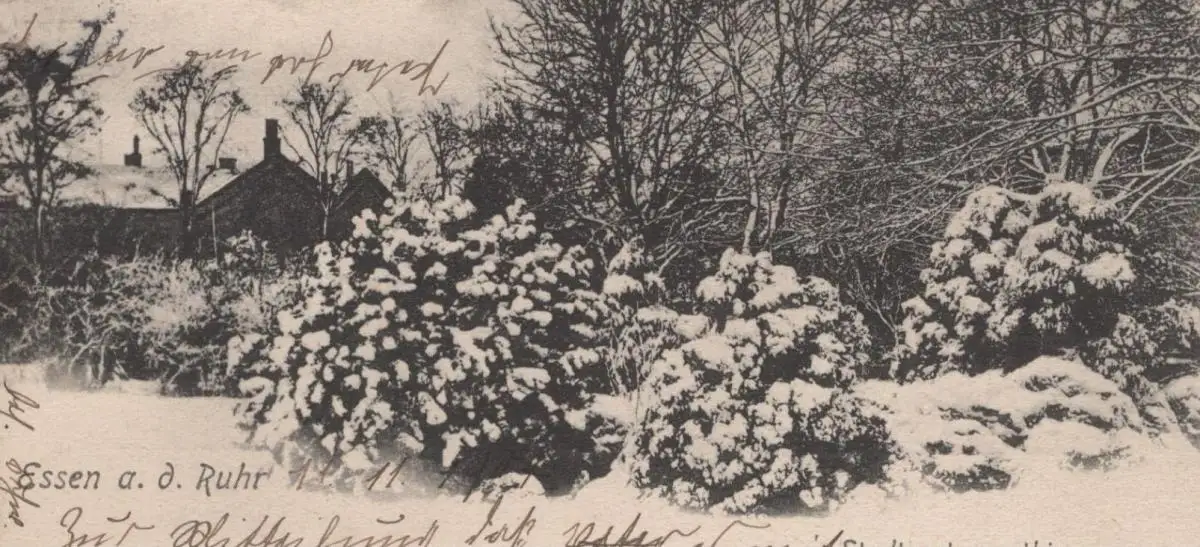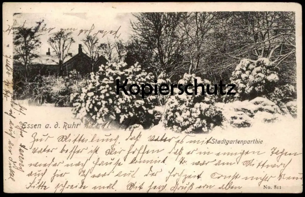 ALTE POSTKARTE ESSEN AN DER RUHR STADTGARTENPARTHIE IM WINTER Stadtgartenpartie Schnee postcard AK Ansichtskarte cpa