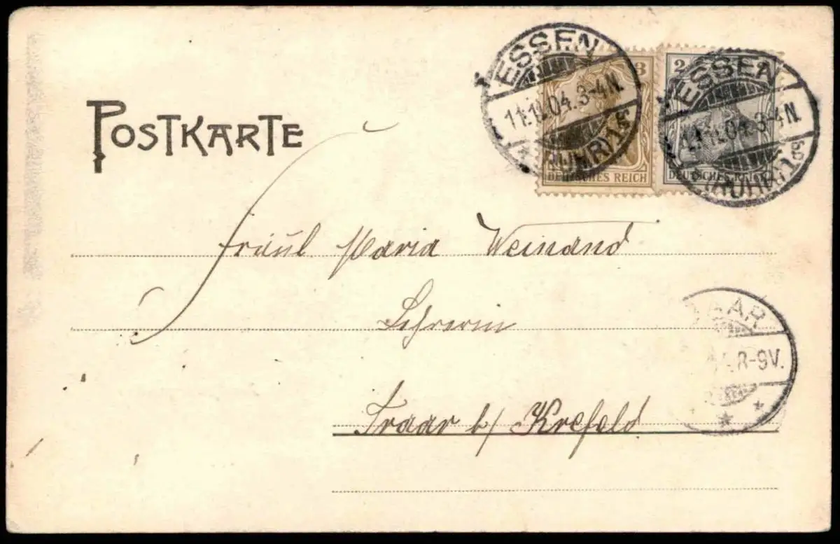 Gelaufen: 11.11.1904 mit Stempel Essen nach Traar bei Krefeld