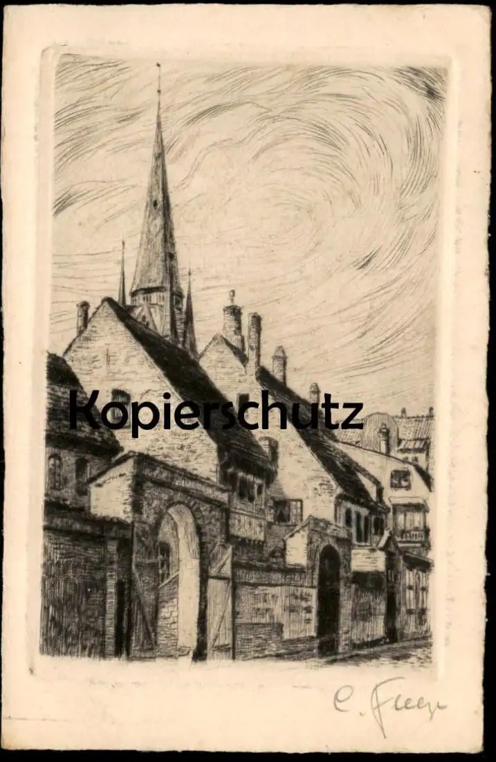 ALTE POSTKARTE FLENSBURG KLOSTERGANG ORIGINAL RADIERUNG HANDABZUG SIGNIERT CARL FLEEGE Ansichtskarte AK cpa postcard