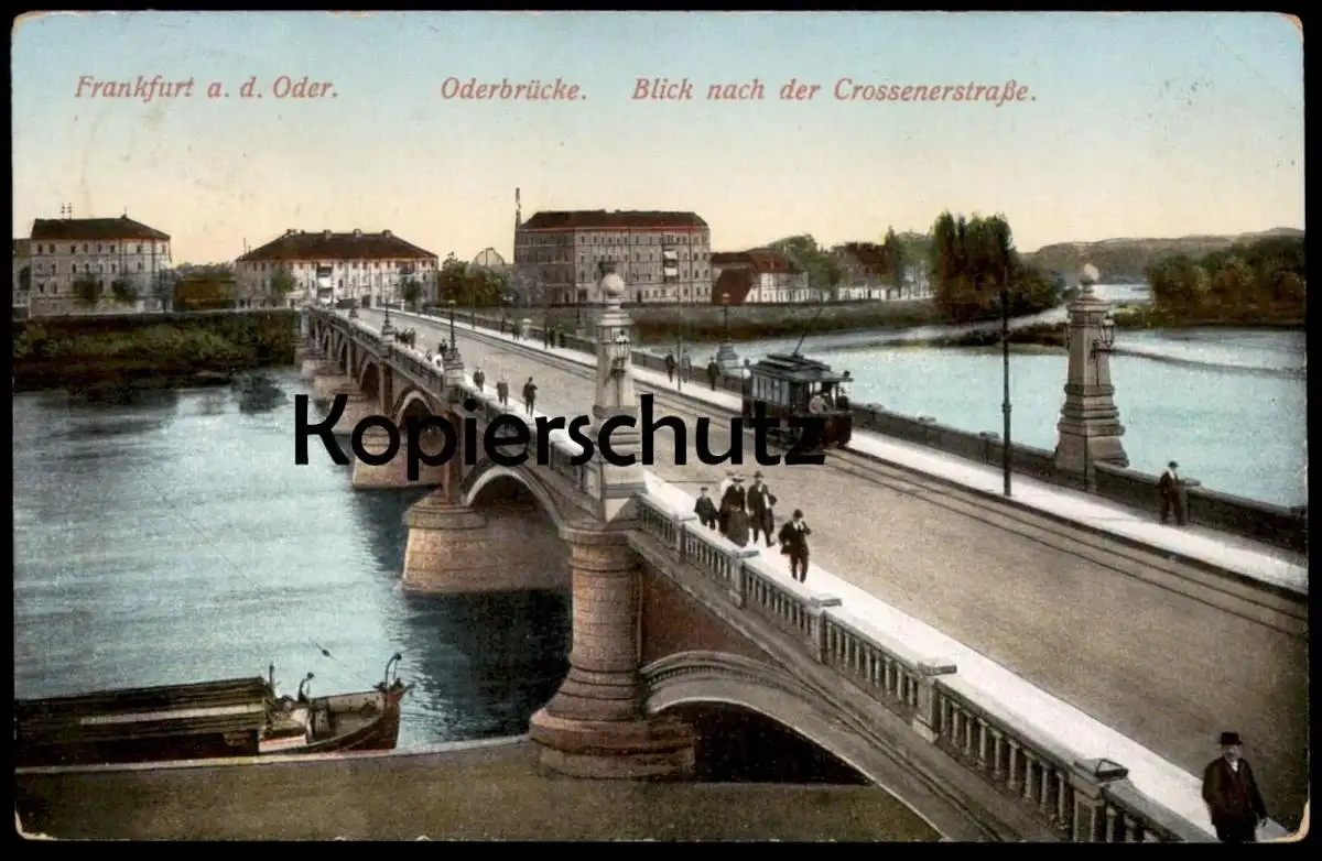 ALTE POSTKARTE FRANKFURT AN DER ODER ODERBRÜCKE BLICK NACH DER CROSSENERSTRASSE STRASSENBAHN
