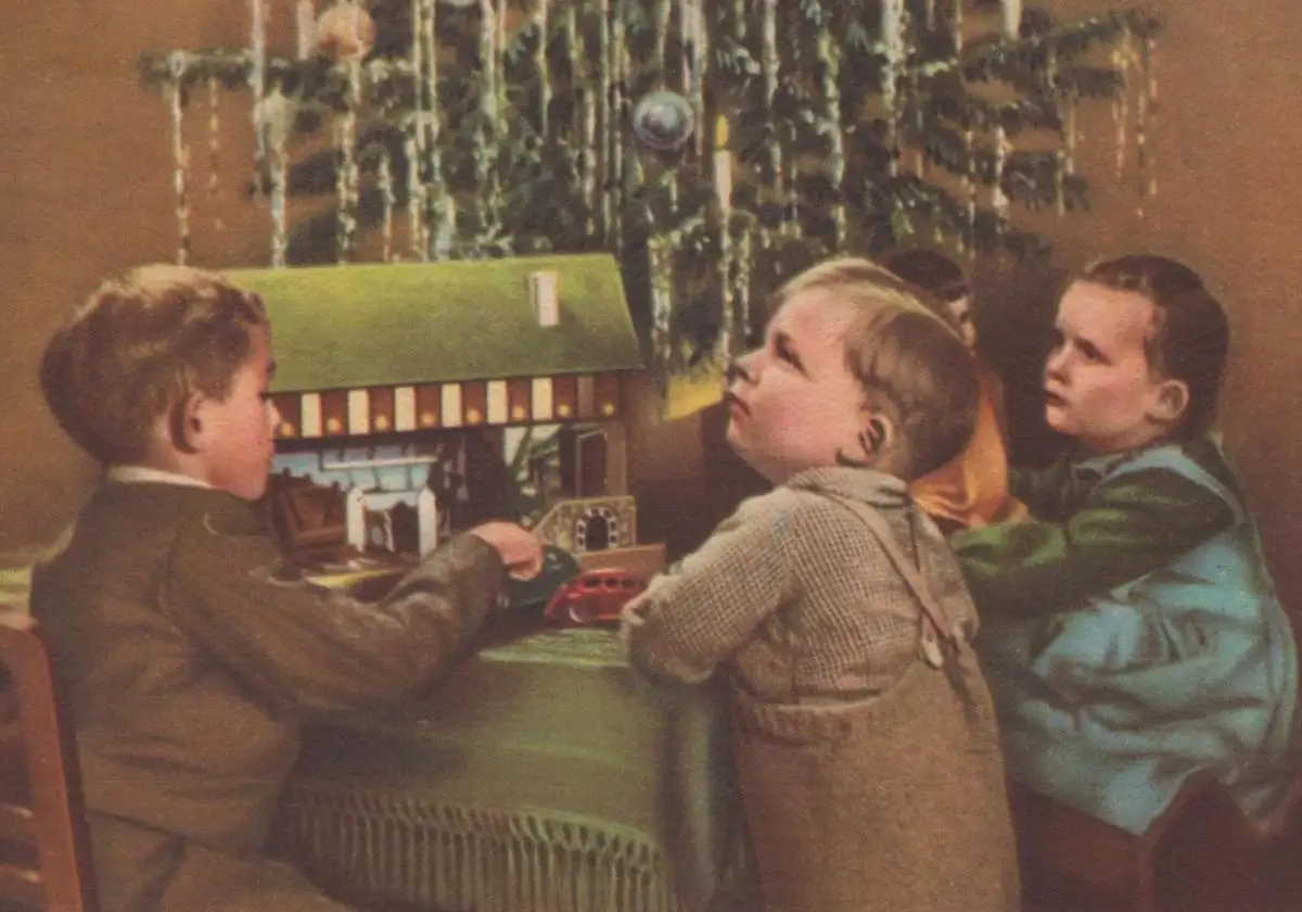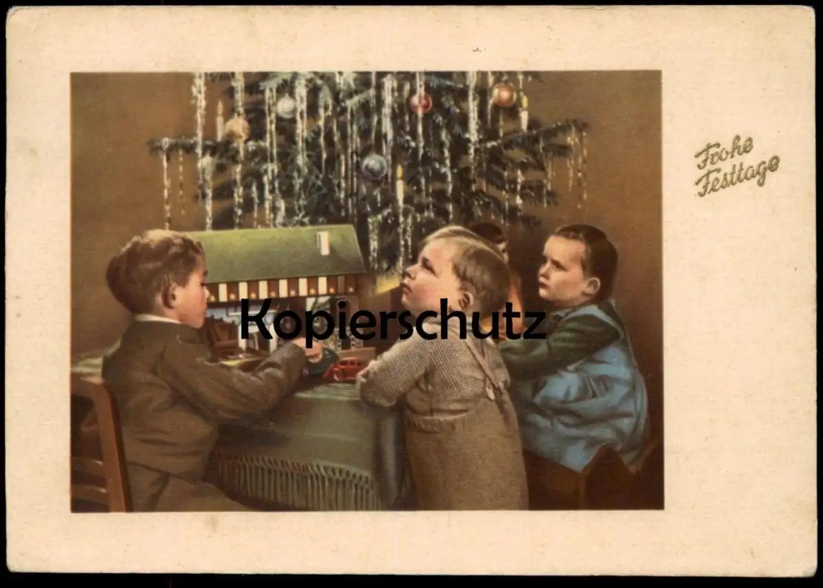 ALTE POSTKARTE FROHE FESTTAGE BESCHERUNG DDR SPIELZEUG KINDER Blechspielzeug Weihnachten postcard cpa AK Ansichtskarte