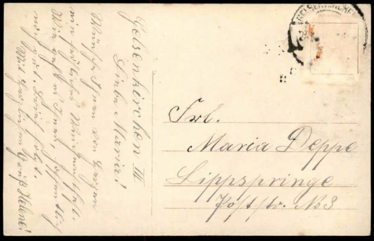 Gelaufen: xx.xx.19xx mit Stempel Gelsenkirchen nach Lippspringe, Briefmarke (sauber) entfernt