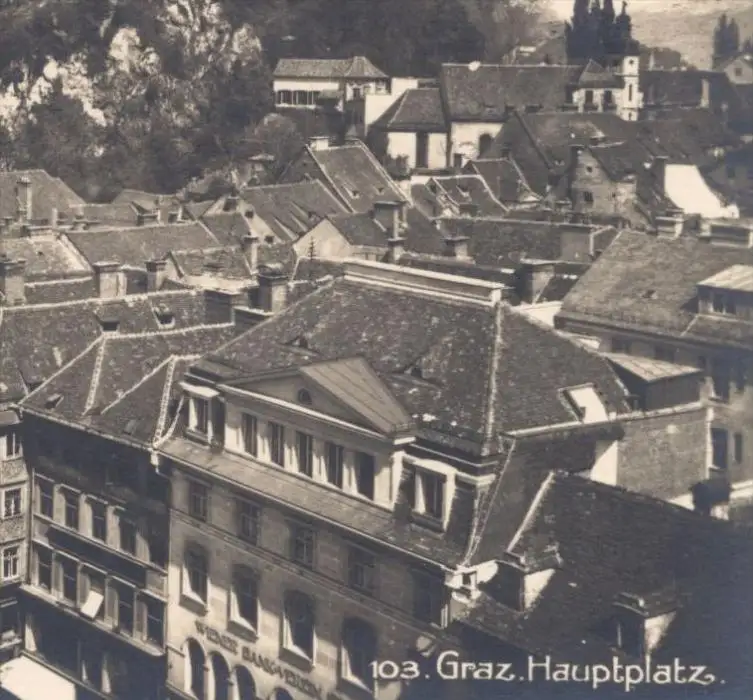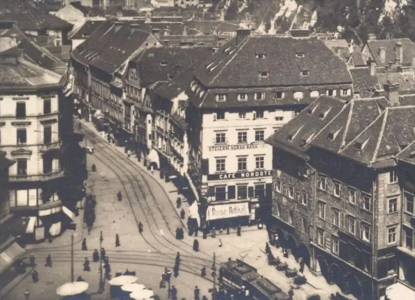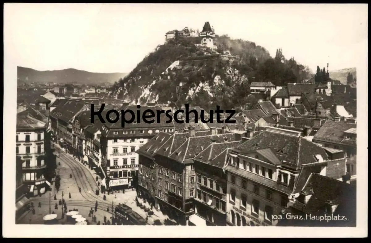 ALTE POSTKARTE GRAZ HAUPTPLATZ CAFÉ NORDSTERN Tram Strassenbahn tramway Wiener Bankverein Steierm. Agrar Bank