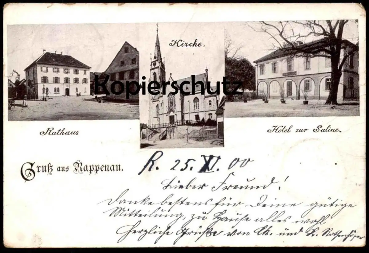 ALTE POSTKARTE GRUSS AUS RAPPENAU HOTEL ZUR SALINE KIRCHE RATHAUSVerlag: unbekannt