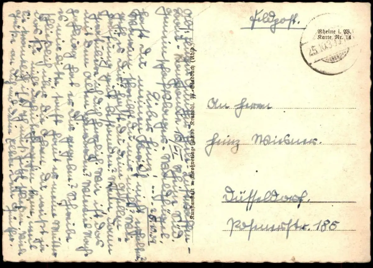 Gelaufen: 25.10.1939 als Feldpost nach Düsseldorf