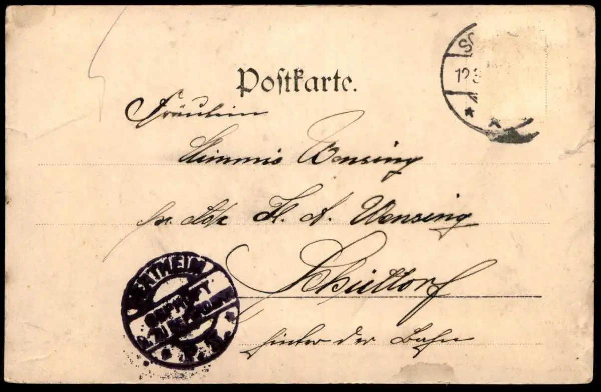 Gelaufen: 12.xx.19xx mit Stempel vermutlich Schüttorf sowie Bentheim “geprüft und zu befördern” nach Schüttorf, Briefmarke (sauber) entfernt
