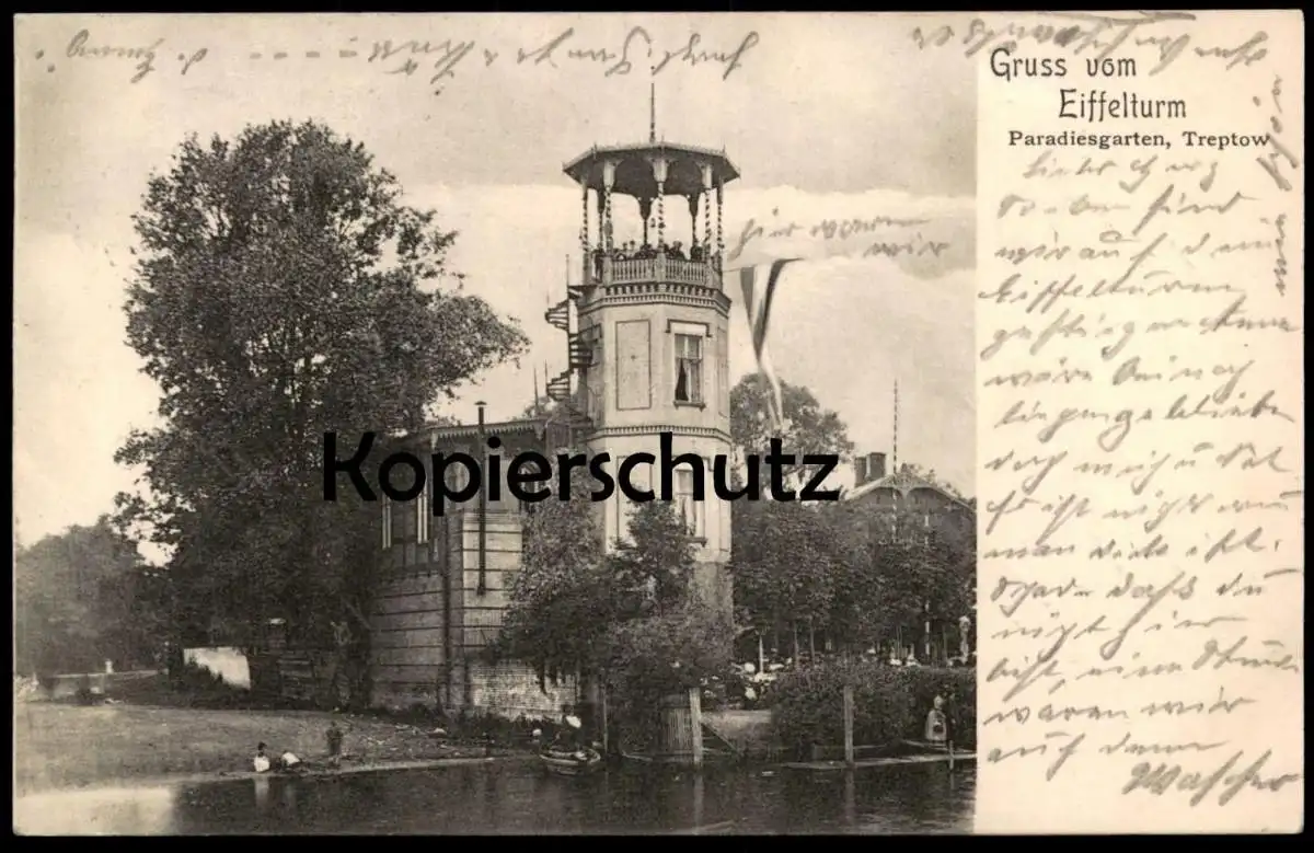 ALTE POSTKARTE GRUSS VOM EIFFELTURM PARADIESGARTEN TREPTOW BERLINVerlag: G. v. C., B.