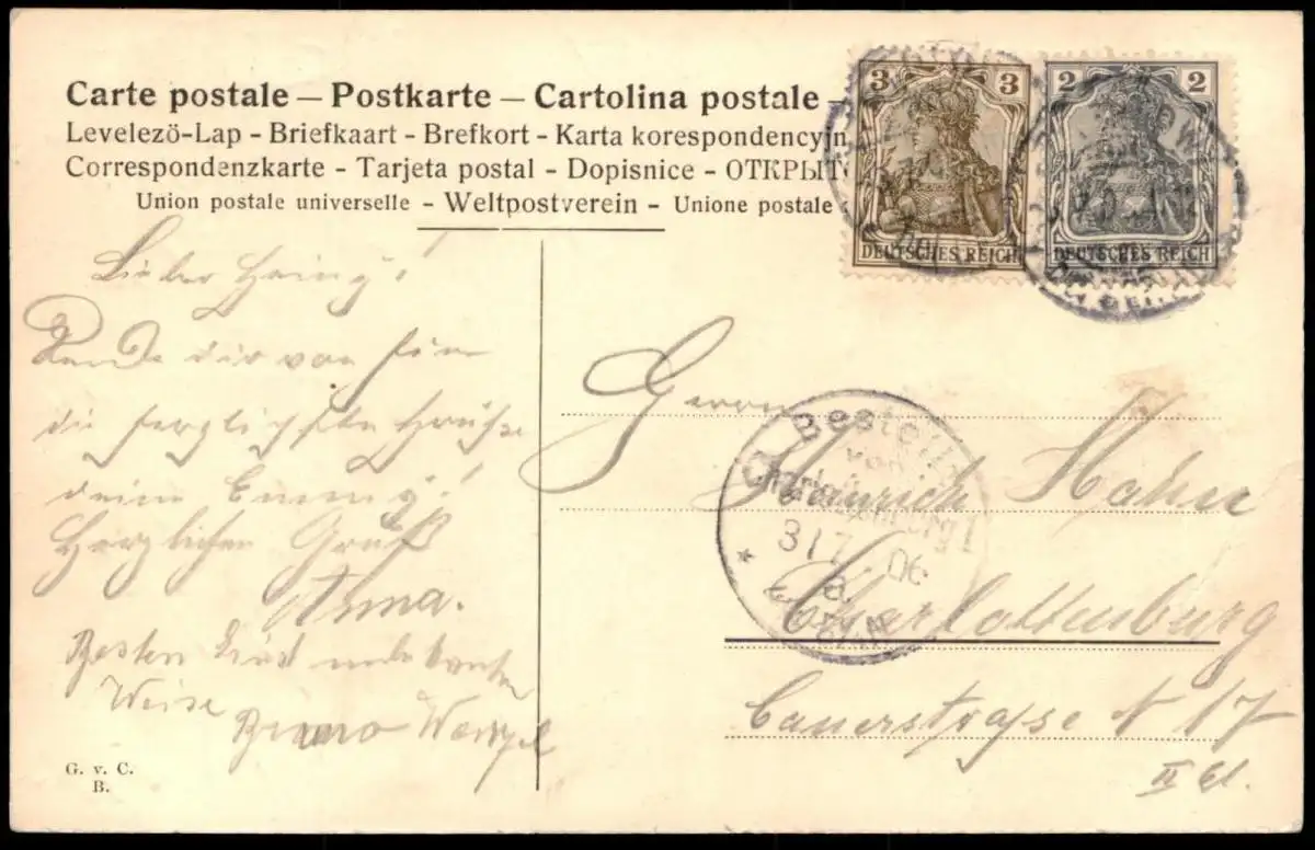 Gelaufen: 31.07.1906 mit Stempel Treptow nach Charlottenburg