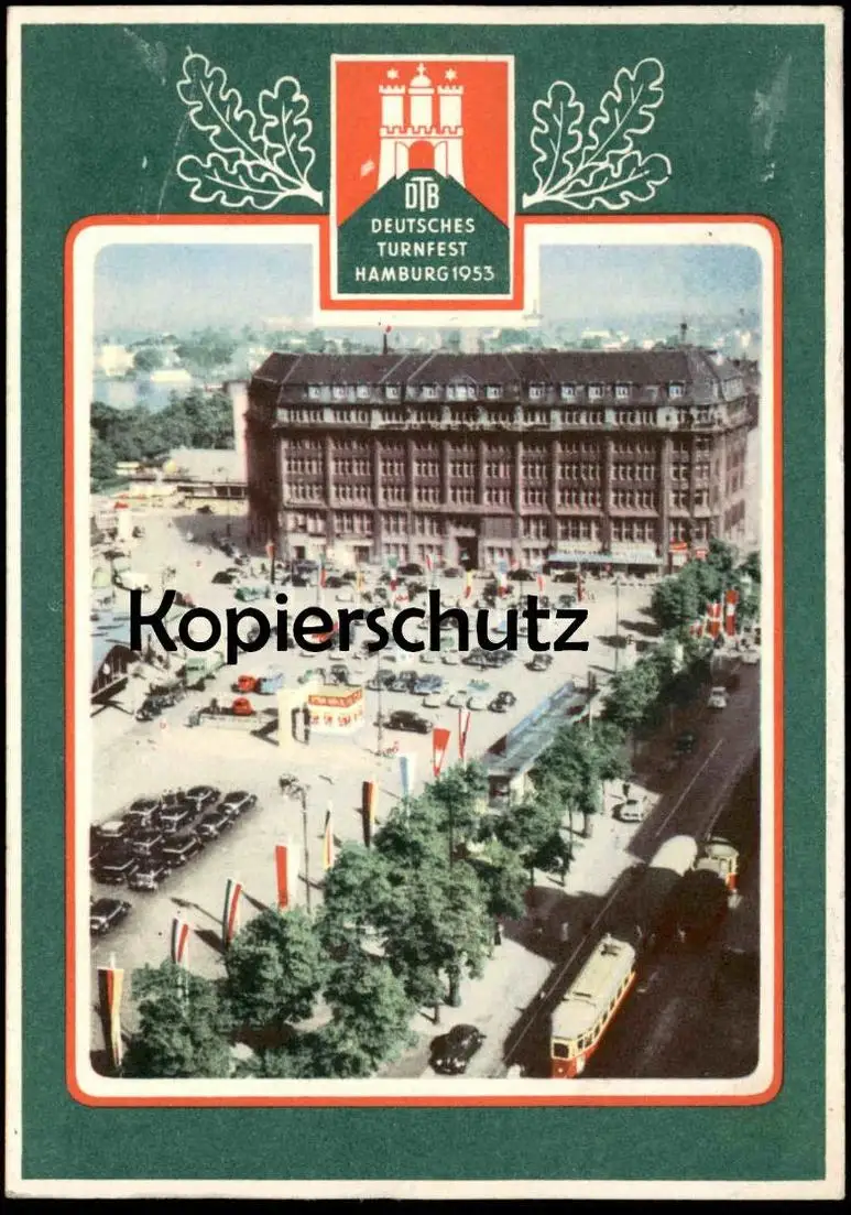 ALTE POSTKARTE HAMBURG DEUTSCHES TURNFEST 1953 DTB STRASSENBAHN PKW AUTO AUTOS FLAGGEN Ansichtskarte AK postcard cpa