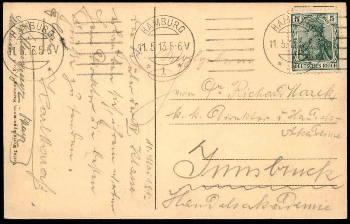 Gelaufen: 11.05.1913 mit Stempel Hamburg nach InnsbruckErhaltung (s. Scan): sehr gut / 916433