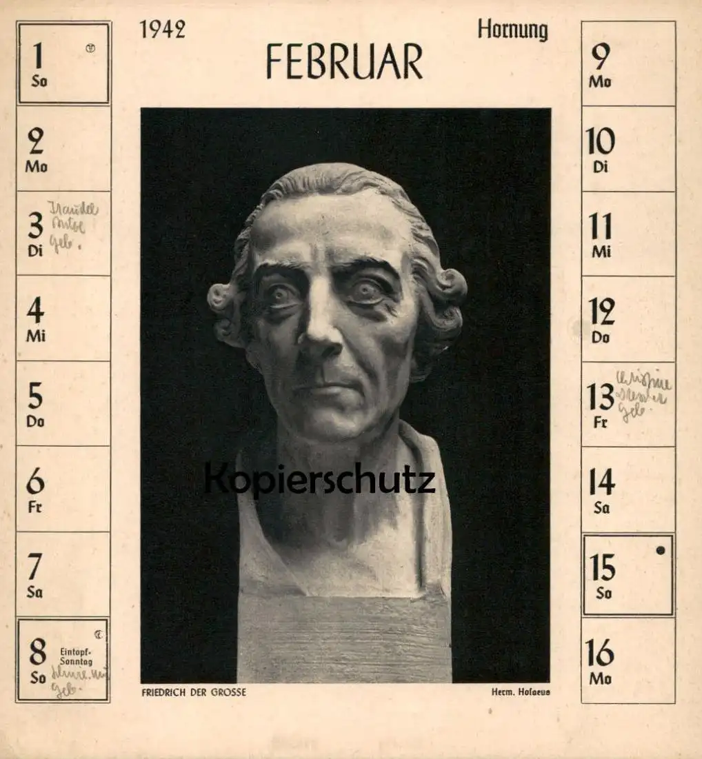 ALTE POSTKARTE HERMANN HOSAEUS FEBRUAR1942 BÜSTE FRIEDRICH DER GROSSE DEUTSCHE PLASTIK