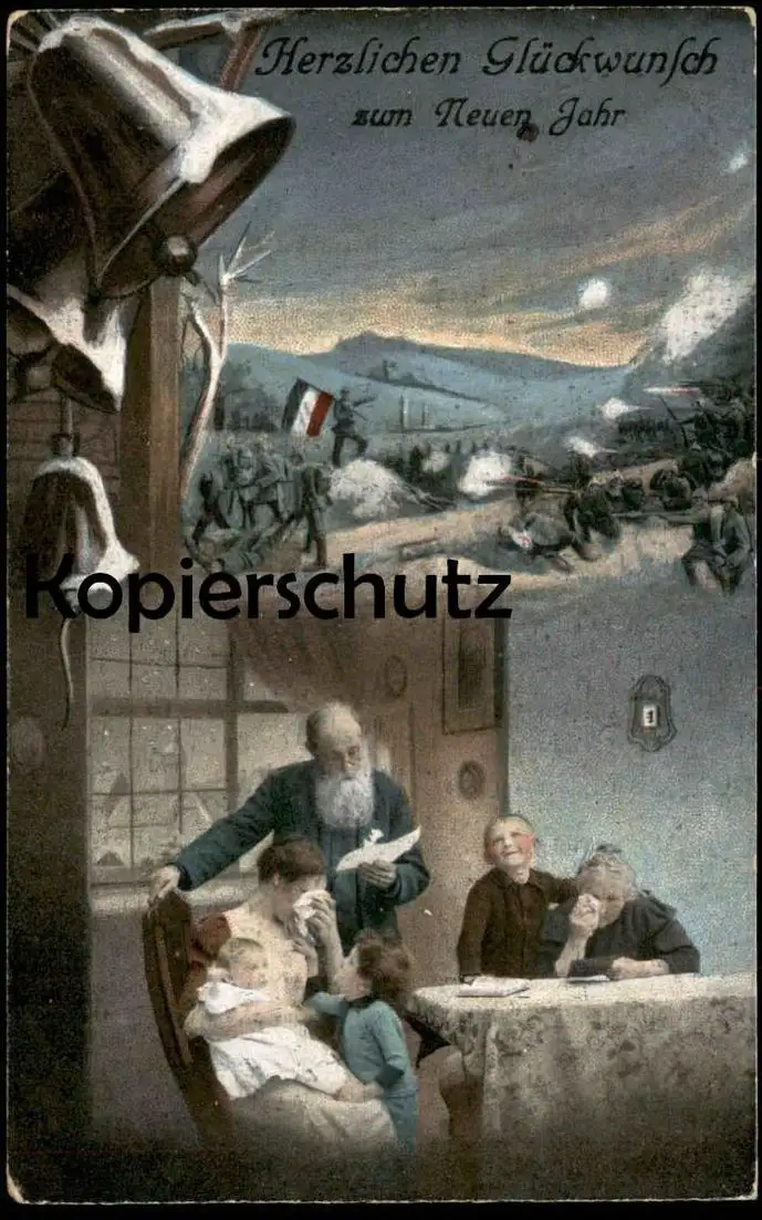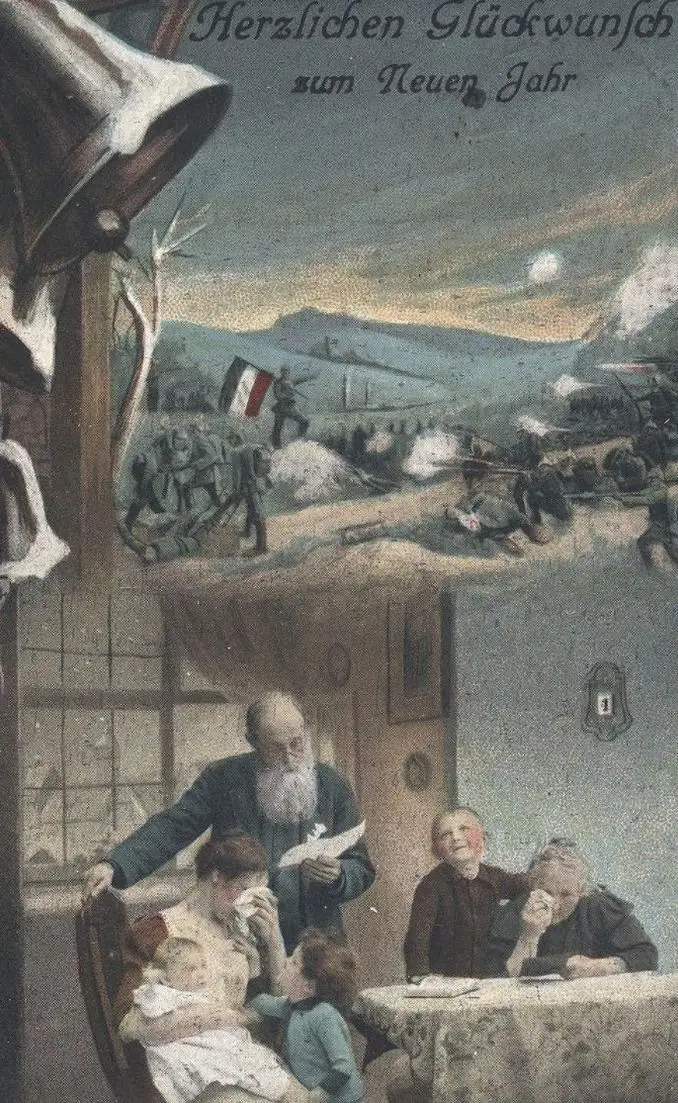 ALTE POSTKARTE HERZLICHEN GLÜCKWUNSCH ZUM NEUEN JAHR 1. WELTKRIEG TRAUER SCHLACHT