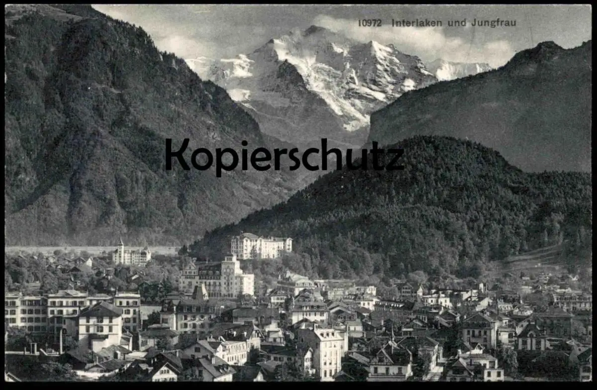 ALTE POSTKARTE INTERLAKEN MIT JUNGFRAU PANORAMA SCHWEIZ Suisse Helvetia cpa postcard AK Ansichtskarte