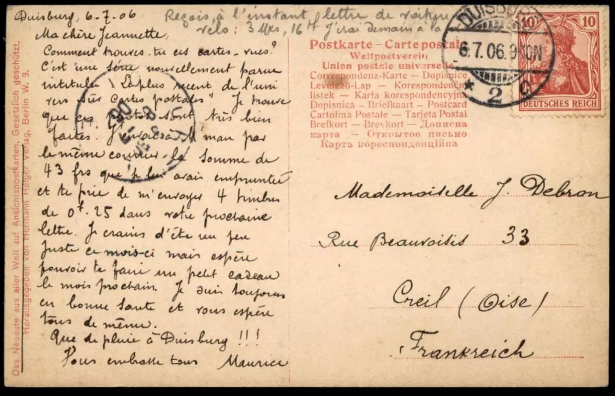 Verlag: "Das Neueste aus aller Welt auf Ansichtspostkarten" Hermann Hillger, BerlinGelaufen: 06.07.1906 mit Stempel Duisburg nach Creil Oise FrankreichErhaltung (s. Scan): gut / 915219