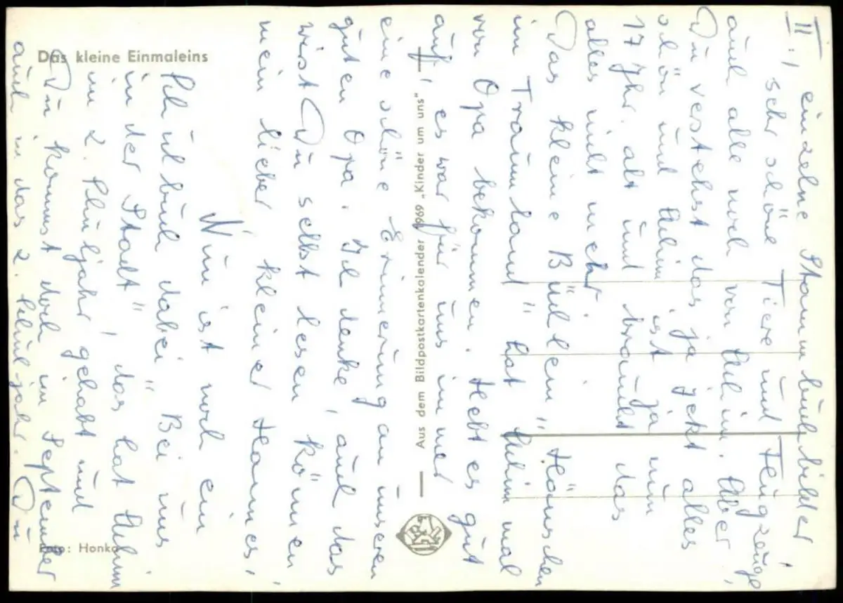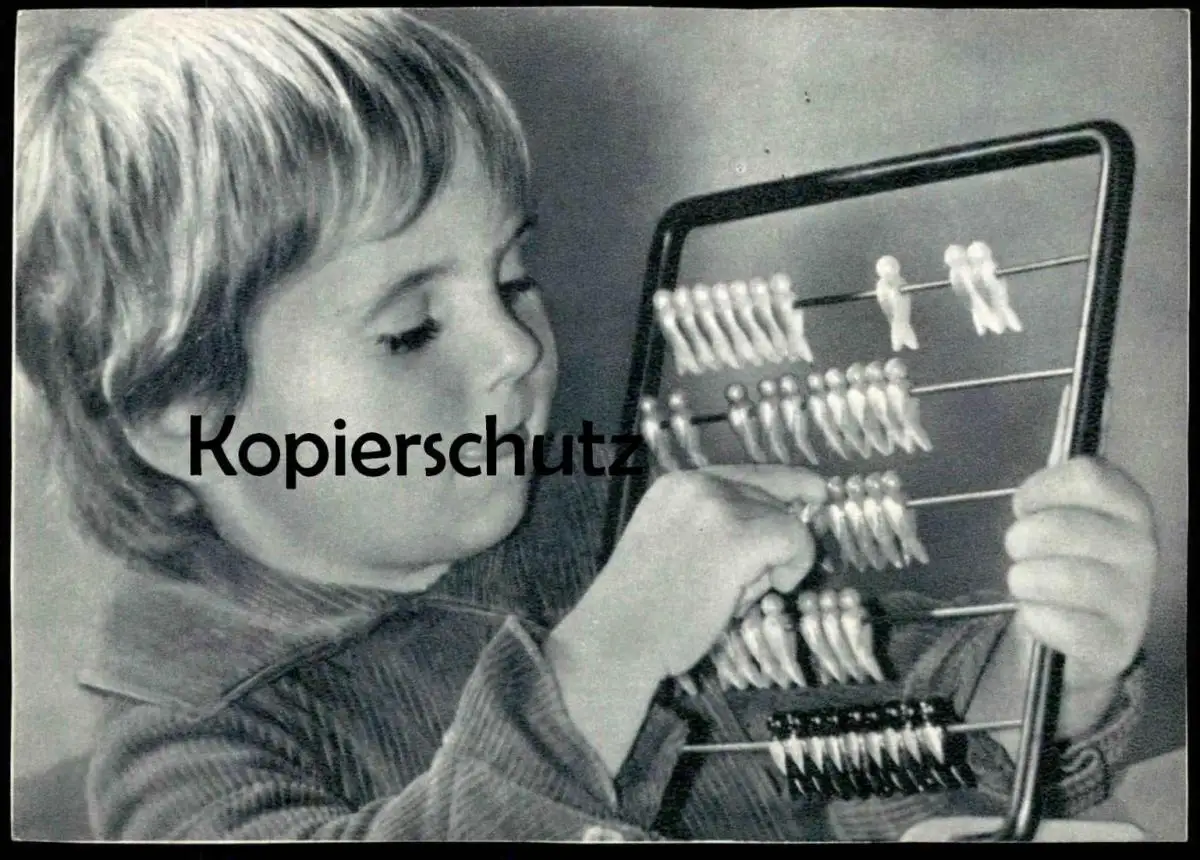 ALTE POSTKARTE DAS KLEINE EINMALEINS KIND MIT RECHENSCHIEBERVerlag: Bildpostkartenkalender „Kinder um uns“ 1969