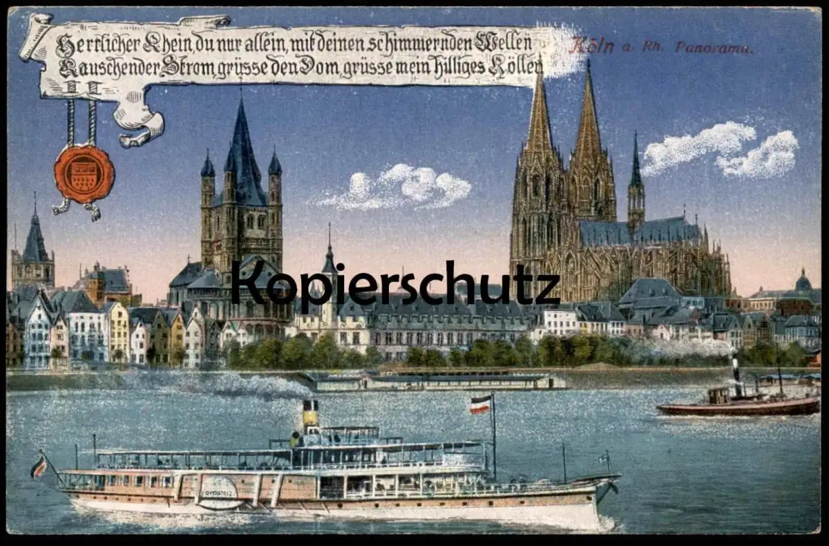 ALTE POSTKARTE KÖLN PANORAMA HERRLICHER RHEIN HILLIGES KÖLLEN DAMPFER OVERSTOLZ Cöln Schiff steam ship cpa postcard AK