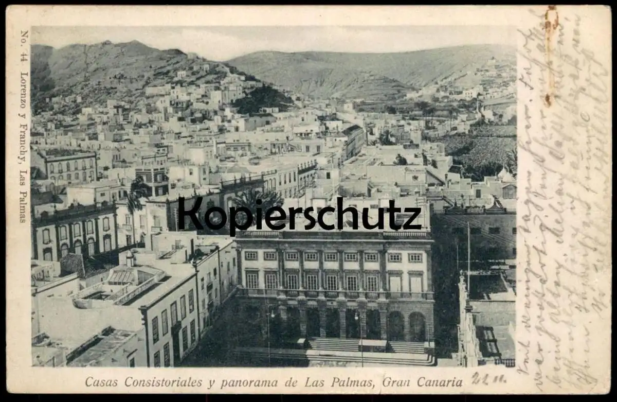 ALTE POSTKARTE LAS PALMAS GRAN CANARIA CASAS CONSISTORIALES Y PANORAMA