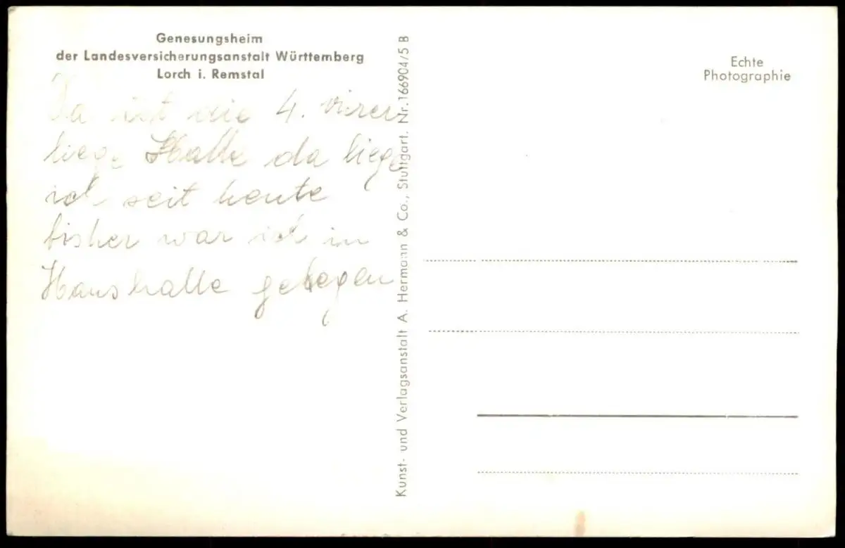ALTE POSTKARTE LORCH GENESUNGSHEIM DER LANDESVERSICHERUNGSANSTALT WÜRTTEMBERGVerlag: A. Hermann, Stuttgart