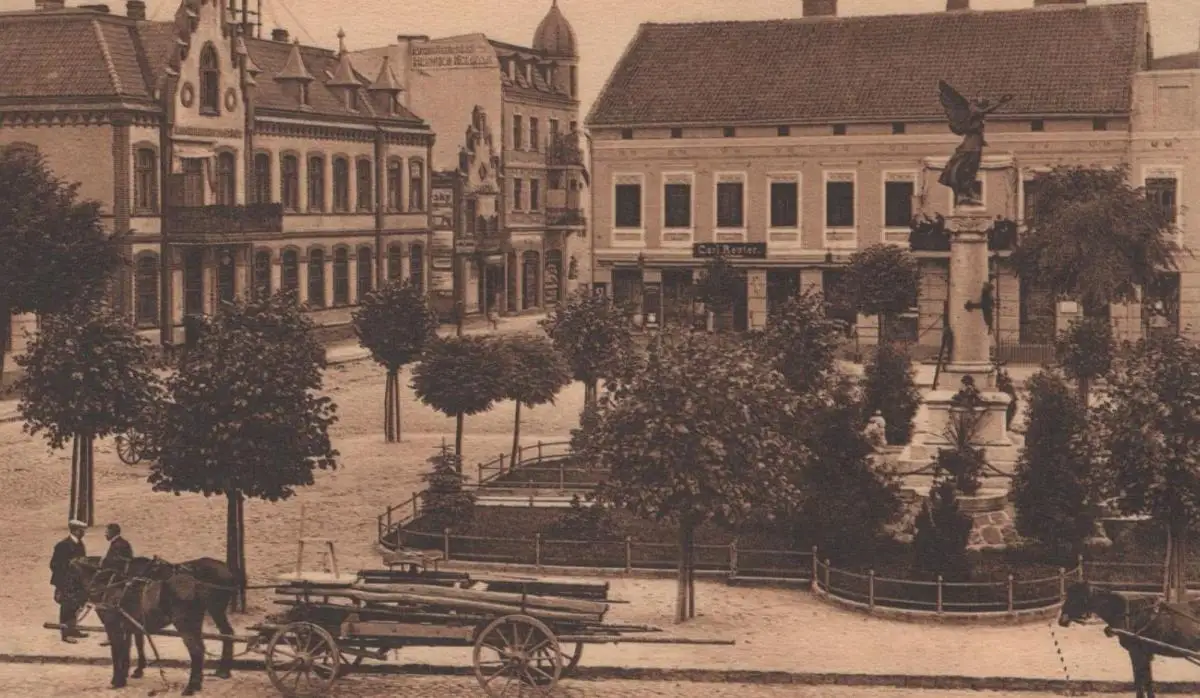 ALTE POSTKARTE LÖTZEN OSTPEUSSEN MARKTPLATZ MIT KRIEGERDENKMAL Gizycko Masuren Brot- und Kuchenbäckerei Heinr. Kolossa