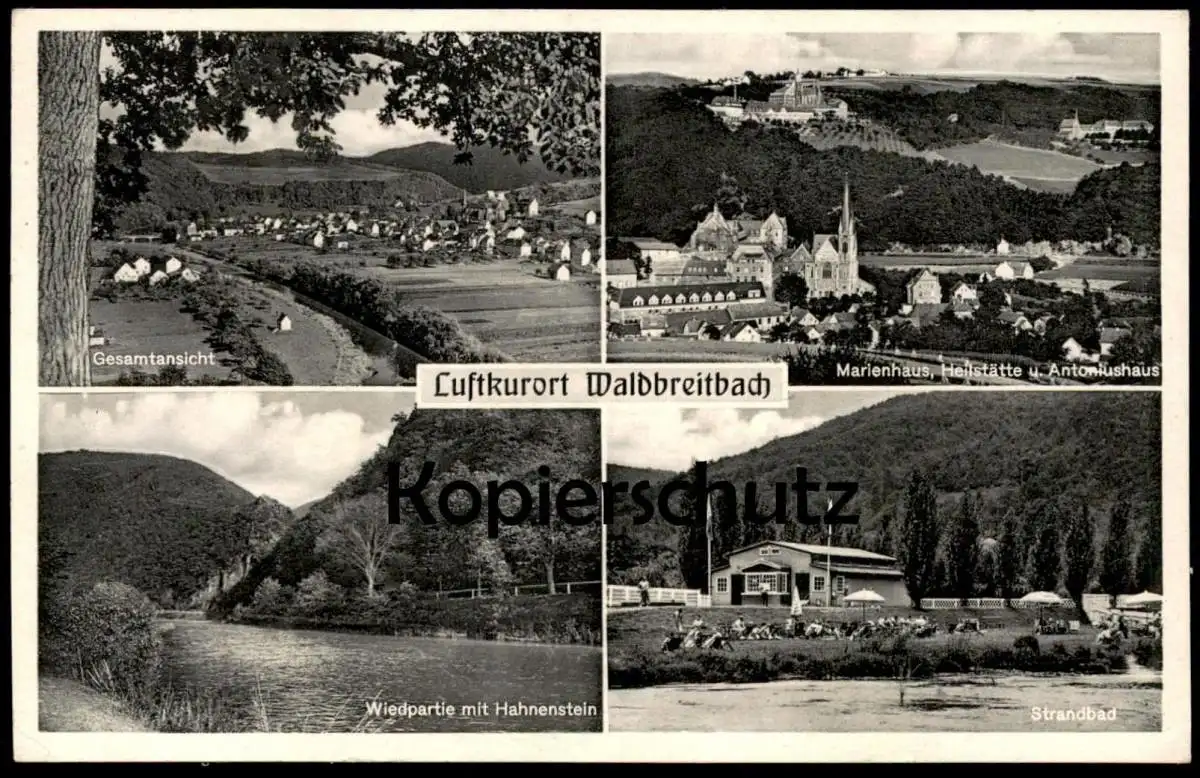 ALTE POSTKARTE LUFTKURORT WALDBREITBACH STRANDBAD GESAMTANSICHT WIEDPARTIE MIT HAHNENSTEIN MARIENHAUS HEILSTÄTTE UND ANTONIUSHAUS STEMPEL KINDERERHOLUNGSHEIM DER STADT BOTTROPVerlag: Cramers, Dortmund