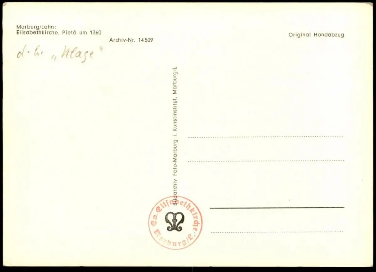 ALTE POSTKARTE MARBURG AN DER LAHN ELISABETHKIRCHE PIETA UM 1360Verlag: Bildarchiv Foto Marburg im Kunstinstitut, Marburg