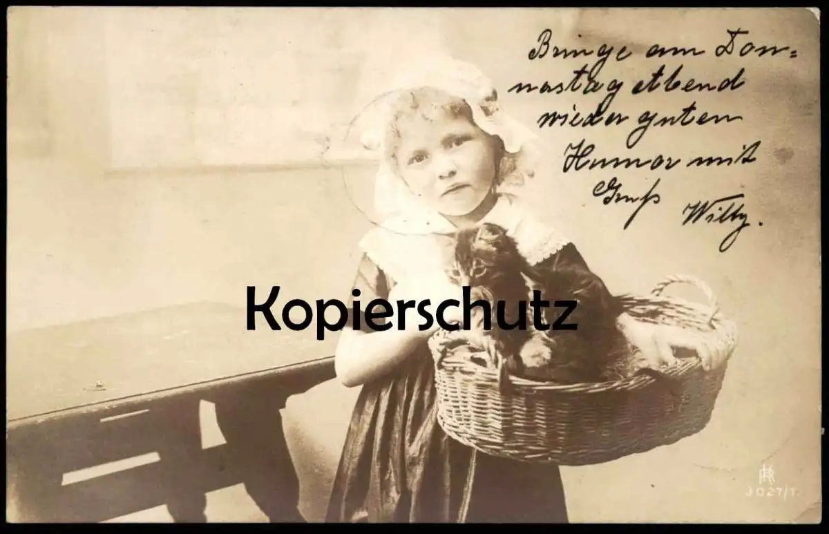ALTE POSTKARTE MÄDCHEN MIT JUNGEN KATZEN IM KORB