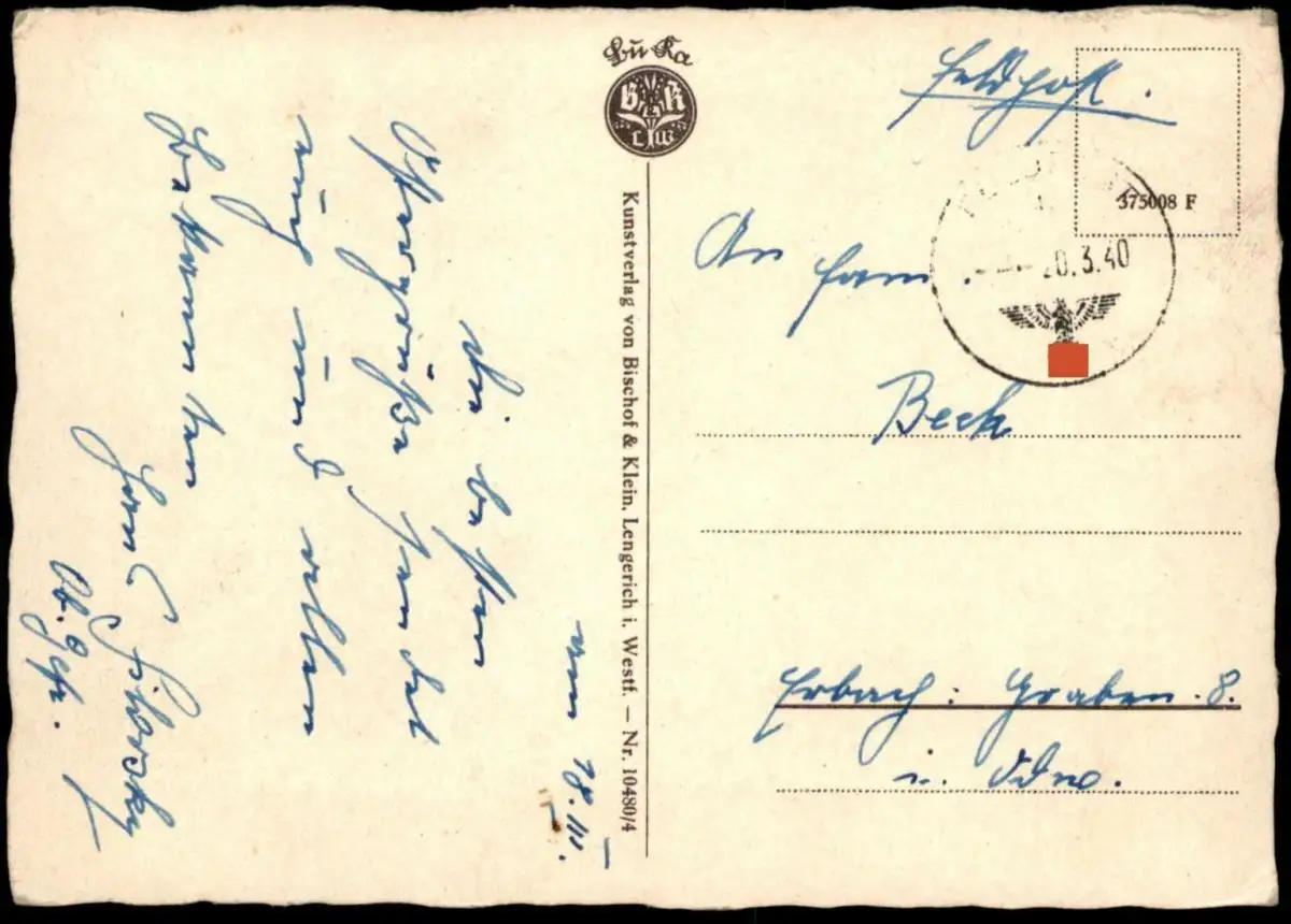 ALTE POSTKARTE MÄDCHEN & JUNGE FROHE OSTERN DER OSTERBOTE SIGN. ILSE NORDHAUSVerlag: Bischof & Klein, LengerichGelaufen: 20.03.1940 mit Feldpoststempel nach Erbach im OdenwaldErhaltung (s. Scan): gut - mittel, minimale Verfärbungen, rechte Ecken minimal bestoßen / 918251