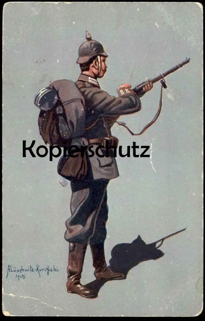 ALTE POSTKARTE MILITÄR INFANTERIST GARDE REGIMENT ZU FUSS BERLIN SOLDAT LÜSCHWITZ KOREFFSKI