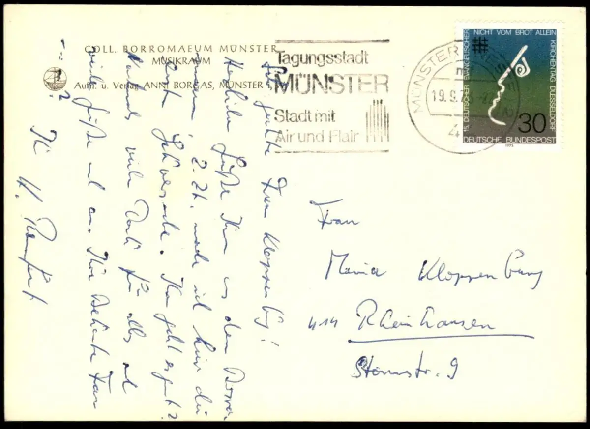Gelaufen: 19.09.1973 mit Briefmarke Kirchentag Düsseldorf Stempel Münster nach RheinhausenErhaltung (s. Scan): gut / 915513