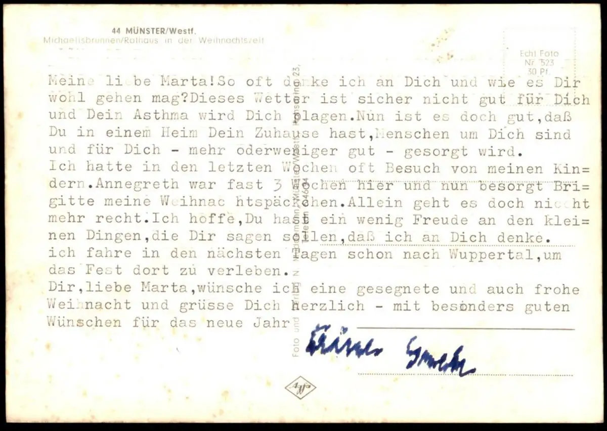 ALTE POSTKARTE MÜNSTER WESTFALEN MICHAELISBRUNNEN RATHAUS WINTER WEIHNACHTEN Ansichtskarte cpa postcard