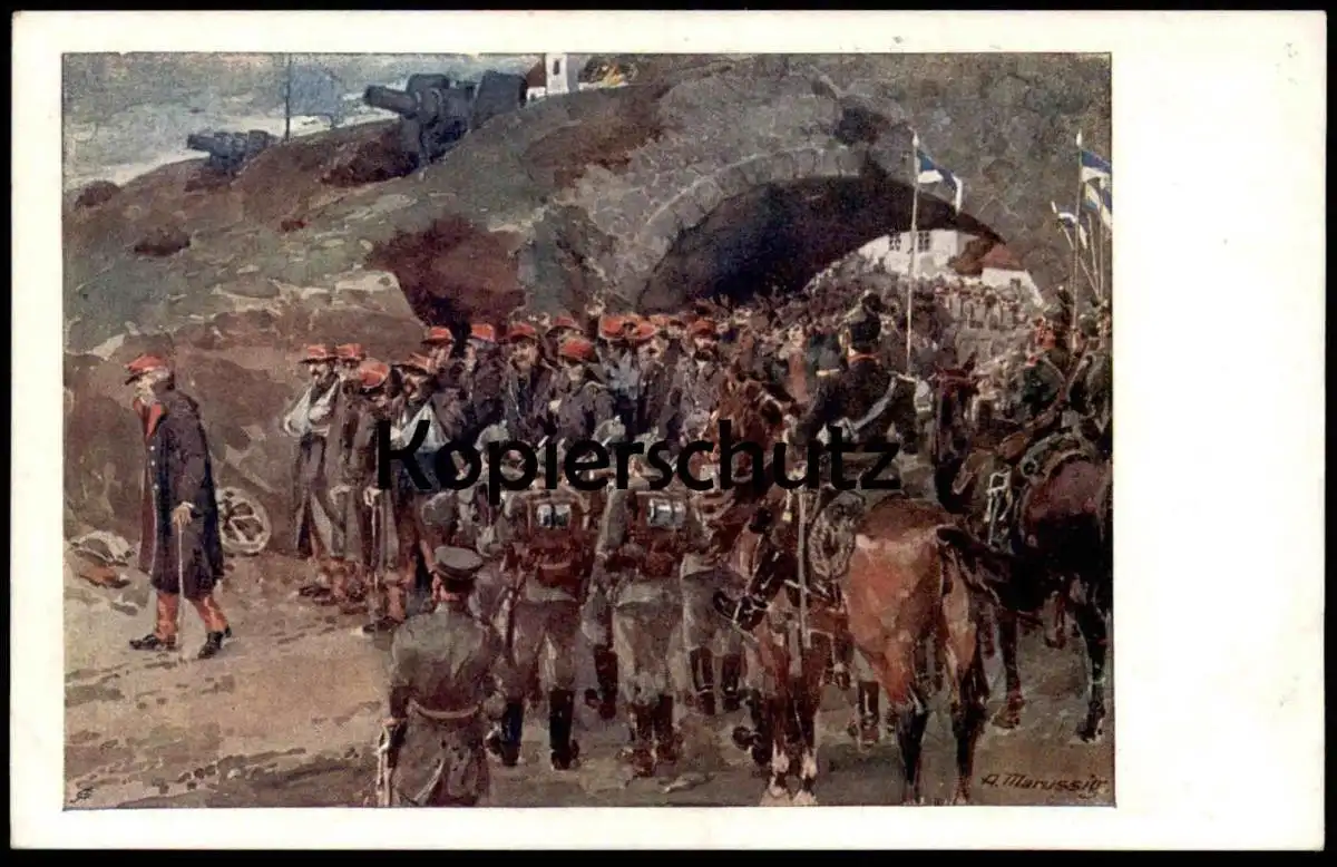 ALTE POSTKARTE OFFIZIER MIT SOLDATEN ANTON MARUSSIG MILITÄR REITER MILITARY Soldat Soldats Soldier Soldiers postcard cpa