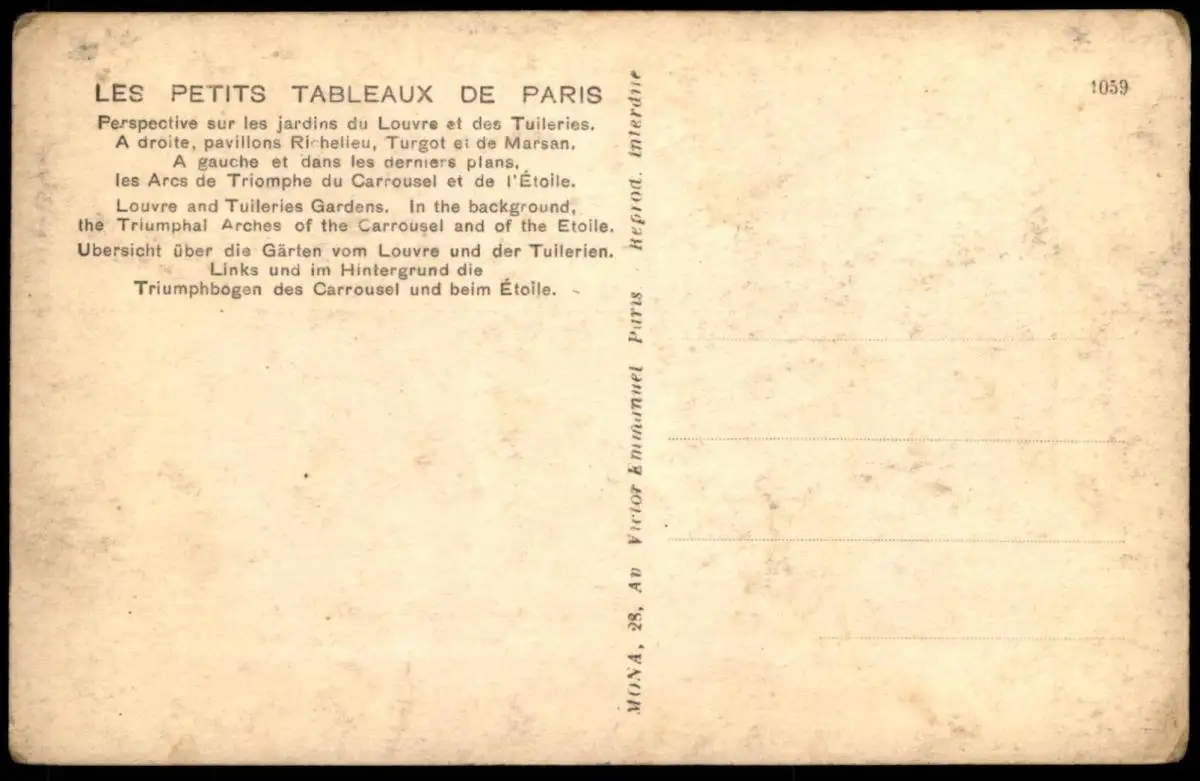 ALTE POSTKARTE PARIS LES PETITS TABLEAUX DE PARIS PERSPECITVE SUE LE JARDINS DU LOUVRE PEINTREVerlag: Mona, Paris